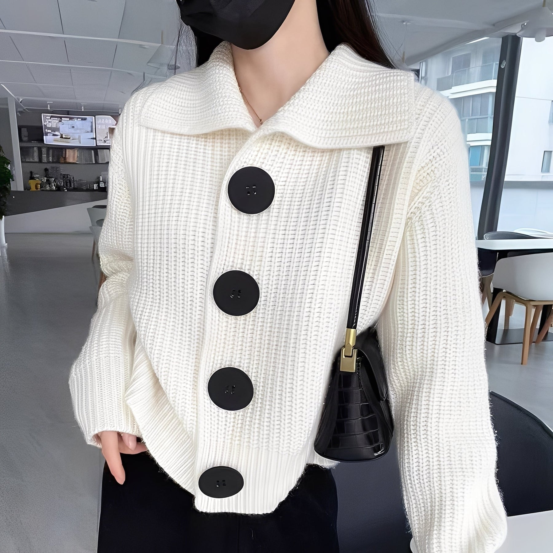 Nowoczesny Kardigan Na Guziki – Miękka Dzianinowa Konstrukcja Z Kołnierzykiem